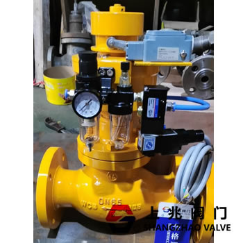 QDQ421F 氣動(dòng)緊急切斷閥是采用活塞式氣動(dòng)執(zhí)行器,為彈簧復(fù)位常閉型切斷閥氣缸的進(jìn)氣方向裝有易熔塞,氣源壓力為0.4~0.7Mpa。氣動(dòng)緊急切斷閥可以配電磁閥、氣源減壓閥、行程開(kāi)關(guān),目的是為了遠(yuǎn)程能有效的控制閥門的情況,在必要時(shí)采取斷電或斷氣達(dá)到緊急切斷作用,氣動(dòng)緊急切斷閥所配的易熔塞是為了環(huán)境溫度到達(dá)易熔塞最高熔點(diǎn)時(shí)自動(dòng)熔化達(dá)到氣缸里的壓縮迅速排放使彈簧快速切斷閥門。氣動(dòng)緊急切斷閥可用于液氨、液化石油氣、天然氣、氮?dú)?、沼氣等易燃?xì)怏w或液體的管道。